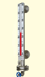 在您選用此產(chǎn)品前我們先將磁性翻柱液位計(jì)的工作原理作一簡(jiǎn)單的介紹。它有一容納浮球的腔體我們稱其為主體管或外殼,它通過法蘭或其他接口與容器組成一個(gè)連通器;這樣它腔體內(nèi)的液面與容器內(nèi)的液面是相同高度的,所以腔體內(nèi)的浮球會(huì)隨著容器內(nèi)液面的升降而升降;這時(shí)候我們并不能看到液位,所以我們?cè)谇惑w的外面裝了一個(gè)翻柱顯示器,因?yàn)槲覀冊(cè)谥圃旄∏驎r(shí)在浮球沉入液體與浮出部分的交界處安裝了磁鋼,它與浮球隨液面升降時(shí),它的磁性透過外殼傳遞給翻柱顯示器,推動(dòng)磁翻柱翻轉(zhuǎn)180°;由于磁翻柱是有紅、白兩個(gè)半圓柱合成的圓柱體,所以翻轉(zhuǎn)180°后朝向翻柱顯示器外的會(huì)改變顏色(液面以下紅色、以上白色),兩色交界處即是液面的高度。