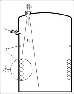 - 如果罐內(nèi)有(1)(2)干涉物件,應(yīng)采用導(dǎo)波管進(jìn)行測量。