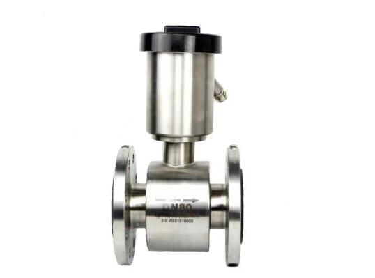 根據(jù)法拉第電磁感應(yīng)原理,在與測量管軸線和磁力線相垂直的管壁上安裝了對檢測電極,當(dāng)導(dǎo)電液體沿測量管軸線運動時,導(dǎo)電液體切割磁力線產(chǎn)生感應(yīng)電勢,此感應(yīng)電勢由兩個檢測電極檢出,數(shù)值大小與流量成正比例,其值為: