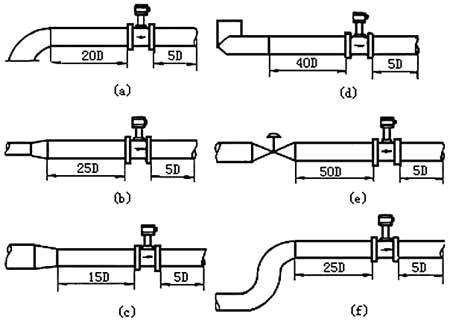 渦街流量計(jì)必須保證上、下游直管段有必要的長度(見圖5)。
