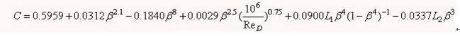 (3)式中: 直徑比,β=d/D;D值的單位為mm;當(dāng)間距符合法蘭取壓方式時, L1=L2=25.4/D;當(dāng)間距符合角接取壓方式時,L1=L2=0。