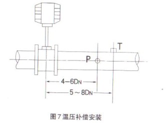 溫度壓力補償安裝:P-壓力變送器,T-溫度傳感器,安裝在后直管段上,見圖7。