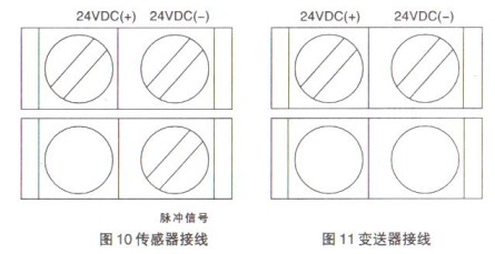 變送器為兩線制:采用二芯電纜,渦街“+”、“-”端子分別接+24V及測(cè)試儀表信號(hào)輸入“+”端,信號(hào)“-”端與24VDC“-”端鏈接,該回路輸出4~20mA。見圖11