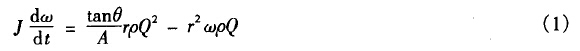 渦輪流量計以動量矩守恒定理為基礎(chǔ)的一種速度式流量儀表,對非穩(wěn)定流由于轉(zhuǎn)子葉片和相關(guān)傳動裝置的共振、轉(zhuǎn)子的轉(zhuǎn)動慣量、脈動的形狀、轉(zhuǎn)子和齒輪摩擦阻力及轉(zhuǎn)子瞬時轉(zhuǎn)矩等因素影響,使渦輪流量計產(chǎn)生很大的誤差,用機(jī)翼理論來分析作用在轉(zhuǎn)子上的驅(qū)動力矩和阻力矩,可得到其運(yùn)動方程: