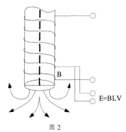 管道式電磁流量傳感器的測量原理是基于法拉第電磁感應(yīng)定律(見圖 1 ),在與測量管道軸線和磁場磁力線相互垂直的管壁上安裝一對檢測電極, 當(dāng)導(dǎo)電液體沿測量管軸線運(yùn)動時,導(dǎo)電液體作切割磁力線運(yùn)動產(chǎn)生感應(yīng)電勢,此感應(yīng)電勢由測量管上的兩個電極檢出,數(shù)值大小為: