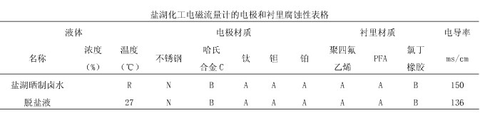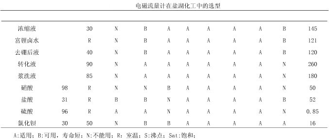 鋰業(yè)公司為鹽湖化工企業(yè),主要生產(chǎn)碳酸鋰硼酸、鉀肥等鹽湖化工產(chǎn)品,原料為曬制鹵水,此鹽湖屬硫酸亞性高鎂鋰比鹽湖,在鹽湖化工生產(chǎn)中產(chǎn)品齊全,也具有代表性。根據(jù)鹽湖化工原料特性,闡述電磁流量計(jì)選型。鹽湖化工原理的特點(diǎn)為電導(dǎo)率高(平均在150ms/cm),強(qiáng)腐蝕,易結(jié)晶。生產(chǎn)過(guò)程中所需要的輔料主要強(qiáng)酸、強(qiáng)堿。生產(chǎn)車(chē)間的管道都為防腐塑料材質(zhì),生產(chǎn)環(huán)境溫度最高為90℃,最低為-30℃。鑒于以上工況,在鹽湖化工中電磁流量計(jì)比其他流量計(jì)具有精度高、壽命長(zhǎng)、維護(hù)方便、性?xún)r(jià)比高的有點(diǎn),在鹽湖化工中主要在反應(yīng)釜的定比例投放、貿(mào)易計(jì)量、體積計(jì)量等方面。