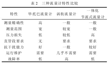 2流量計(jì)選型與分析 根據(jù)項(xiàng)目輸送蒸汽的性質(zhì)和工藝操作參數(shù),以及蒸汽計(jì)量廣泛選擇的流量計(jì)型號(hào),初步確定可以選擇的流量計(jì)有畢托巴流量計(jì)、渦街流量計(jì)和一體化節(jié)流式流量計(jì),以下對(duì)三種流量計(jì)的原理及特點(diǎn)做以分析比較。 2.1畢托巴流量計(jì) 畢托巴流量計(jì)是采用皮托管原理提取管道中心流體流速(全壓-靜壓=動(dòng)壓)再換算成流體體積流量與質(zhì)量流量的差壓式流量計(jì)。皮托管原理早就廣泛應(yīng)用在航天航空業(yè)中。 2.1.1組成和工作原理 畢托巴流量計(jì)將探針插入管道中心,總壓孔對(duì)正流體的來流方向,靜壓孔對(duì)正流體的去流方向,總壓與靜壓之差即為管道中心的實(shí)測(cè)差壓,再由該探針的風(fēng)洞標(biāo)定曲線擬合出該點(diǎn)的標(biāo)準(zhǔn)差壓,根據(jù)標(biāo)準(zhǔn)差壓來計(jì)算流體的流量。同時(shí)還需用壓力變送器測(cè)出流體壓力,用熱電阻溫度計(jì)測(cè)出流體溫度,把標(biāo)準(zhǔn)差壓信號(hào)、壓力信號(hào)、溫度信號(hào)同時(shí)引入單片機(jī)構(gòu)成的流量積算儀或直接接入DCS系統(tǒng),一方面對(duì)探針的流量方程進(jìn)行解算,再一方面對(duì)蒸汽進(jìn)行壓力、溫度補(bǔ)償,以保證測(cè)量精度,并用數(shù)字顯示出差壓、壓力、溫度、瞬時(shí)流量、累積流量、熱量、速度等參數(shù)。 2.1.2畢托巴流量計(jì)的優(yōu)點(diǎn) ①準(zhǔn)確度高。蒸汽測(cè)量最高可達(dá)0.5級(jí); ②可靠性高。因探針的構(gòu)造非常簡(jiǎn)單,結(jié)構(gòu)設(shè)計(jì)合理,導(dǎo)壓管內(nèi)介質(zhì)不流動(dòng),雜物不容易進(jìn)去,所以能長(zhǎng)時(shí)間保持測(cè)量精度; ③測(cè)量范圍廣。流量在0.2~50000t/h都可以準(zhǔn)確測(cè)量。對(duì)低流速、小流量、大管徑測(cè)量效果、佳; ④安裝簡(jiǎn)便。只需在管道合適的位置上打一個(gè)相當(dāng)?shù)目,把一次元件探針插入管道中心,即可方便地進(jìn)行安裝; ⑤壓力損失小,一次元件傳感器是Φ20mm~Φ55mm不銹鋼制成,其截面積很小,在介質(zhì)管道中幾乎是無壓力損失,與孔板等節(jié)流裝置相比較具有明顯的節(jié)能效果;⑥現(xiàn)場(chǎng)安裝不要求直管段。 2.1.3畢托巴流量計(jì)的缺點(diǎn) ①價(jià)格高,性價(jià)比低;②引壓管沒有不積冷凝水設(shè)置和防凍設(shè)置。 2.2渦街流量計(jì) 2.2.1組成和工作原理 渦街流量計(jì)屬于體積流量計(jì)。渦街流量計(jì)是應(yīng)用流體振蕩原理來測(cè)量流量的,流體在管道中經(jīng)過旋渦發(fā)生體后會(huì)產(chǎn)生正比于流速的旋渦,由此可算出流體的流量。流量與旋渦頻率的關(guān)系,可用下式表示[1]:V=f/k 式中:f為旋渦的個(gè)數(shù);k為儀表系數(shù);V為流過流體的體積。 2.2.2渦街流量計(jì)用于蒸汽計(jì)量的主要優(yōu)點(diǎn) ①結(jié)構(gòu)簡(jiǎn)單而牢固無可動(dòng)部件,可靠性高,長(zhǎng)期運(yùn)行十分可靠; ②安裝簡(jiǎn)單,維修十分方便; ③輸出是與流量成正比的脈沖信號(hào),無零點(diǎn)漂移,精度高; ④壓力損失較小,運(yùn)行費(fèi)用低,節(jié)能; ⑤測(cè)量范圍寬,量程比可達(dá)1∶10; ⑥應(yīng)用范圍廣,蒸汽、氣體、液體的流量均可測(cè)量。 2.2.3渦街流量計(jì)用于蒸汽計(jì)量的缺點(diǎn) ①要求被測(cè)量介質(zhì)的流動(dòng)雷諾數(shù)下限較高,體流速一般應(yīng)大于4m/s,流速過低時(shí)會(huì)造成測(cè)量精度降低甚至小流量不計(jì)量;②對(duì)振動(dòng)較敏感,在強(qiáng)烈振動(dòng)的環(huán)境下工作,會(huì)影響測(cè)量精度;③對(duì)被測(cè)量介質(zhì)的潔凈度要求較高,不適宜測(cè)量對(duì)頻率信號(hào)檢測(cè)器造成嚴(yán)重污染的臟污流體。 2.3一體化節(jié)流式流量計(jì) 2.3.1一體化節(jié)流式流量計(jì)結(jié)構(gòu)和工作原理 一體化節(jié)流式流量計(jì)結(jié)構(gòu),如圖1所示。 一體化節(jié)流式流量計(jì)是將節(jié)流裝置和差壓變送器做成一體,由差壓變送器輸出4~20mA差壓信號(hào),可測(cè)量多種介質(zhì)(液體、氣體、蒸汽),設(shè)計(jì)了防凍式隔離器,簡(jiǎn)化了流量計(jì)結(jié)構(gòu),便于安裝。一體化節(jié)流式流量計(jì)可采用多種節(jié)流件,常用ISA1932標(biāo)準(zhǔn)噴嘴及標(biāo)準(zhǔn)孔板。 配置智能化差壓變送器和帶通訊功能的流量顯示設(shè)備的一體化節(jié)流式流量計(jì),可通過HART協(xié)議實(shí)現(xiàn)寬量程比檢測(cè),流量測(cè)量范圍度可達(dá)到6∶1~10∶1或更寬。充滿管道的流體流經(jīng)管道內(nèi)的節(jié)流裝置,流束將在節(jié)流件處形成局部收縮,從而使流速增加,靜壓力降低,在節(jié)流件前后產(chǎn)生了靜壓力差(或差壓)。流體的流速愈大,在節(jié)流件前后產(chǎn)生的差壓也愈大。因此通過測(cè)量差壓的方法可測(cè)量流量[2]。 2.3.2一體化節(jié)流式流量計(jì)用于蒸汽計(jì)量的優(yōu)點(diǎn) ①測(cè)量范圍寬約為10∶1;②優(yōu)先選定值ISO1932噴嘴,壓損小(同流量,同β值情況下,為孔板的60%),檢定周期長(zhǎng)(是孔板的4倍);③引壓管不積存冷凝水;④采用專利技術(shù)———防凍隔離器,不需伴熱、保溫和隔離器,節(jié)約能源;⑤介質(zhì)適用性強(qiáng)(特別適用于蒸汽流