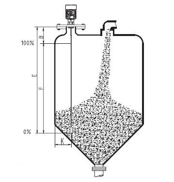 頂部盲區(qū)是指物料高料面與測(cè)量參考點(diǎn)之間的小距離。