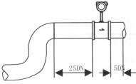 d)測量液體時,為了保證管內(nèi)充滿液體,所以在垂直或傾斜管道安裝儀表時,應(yīng)該保證液體流動方向從下而上。若管道內(nèi)含少量氣體,為了防止氣體進(jìn)入儀表測量管,儀表應(yīng)安裝在管線的較低處如圖4b所示