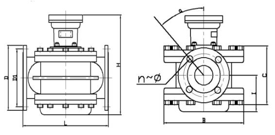 1.鑄鐵型腰輪流量計(jì)外形尺寸