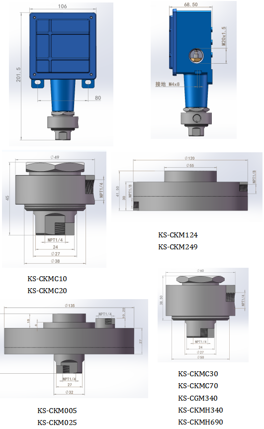 KS-PKM系列:丁腈橡膠(Buna-N)膜片及0型圈,1/2”NPTF壓力接口鋁合金材質(zhì)