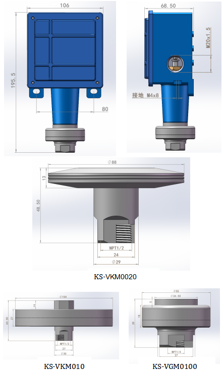 KS-VKM系列:丁腈橡膠及1/2NPTF壓力接口鋁合金材質(zhì)(其他接口和材質(zhì)可定制)