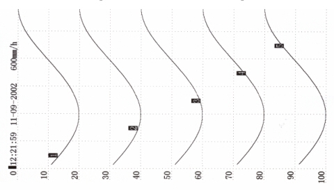 9.走紙速度: 通過(guò)鍵盤任意設(shè)定,走紙速度為10 mm/h到990mm/h。