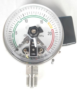在電接點(diǎn)壓力表裝置的電接觸信號(hào)針上,裝有可調(diào)節(jié)的永久磁鋼,可以增加接點(diǎn)吸力,加快接觸動(dòng)作,從而使觸點(diǎn)接觸可靠,消除電弧,能有效的避免儀表由于工作環(huán)境振動(dòng)或介質(zhì)壓力脈動(dòng)造成觸點(diǎn)的頻繁關(guān)斷。所以電接點(diǎn)壓力表具有動(dòng)作可靠、使用壽命長(zhǎng)、觸點(diǎn)開關(guān)功率較大等優(yōu)點(diǎn)。